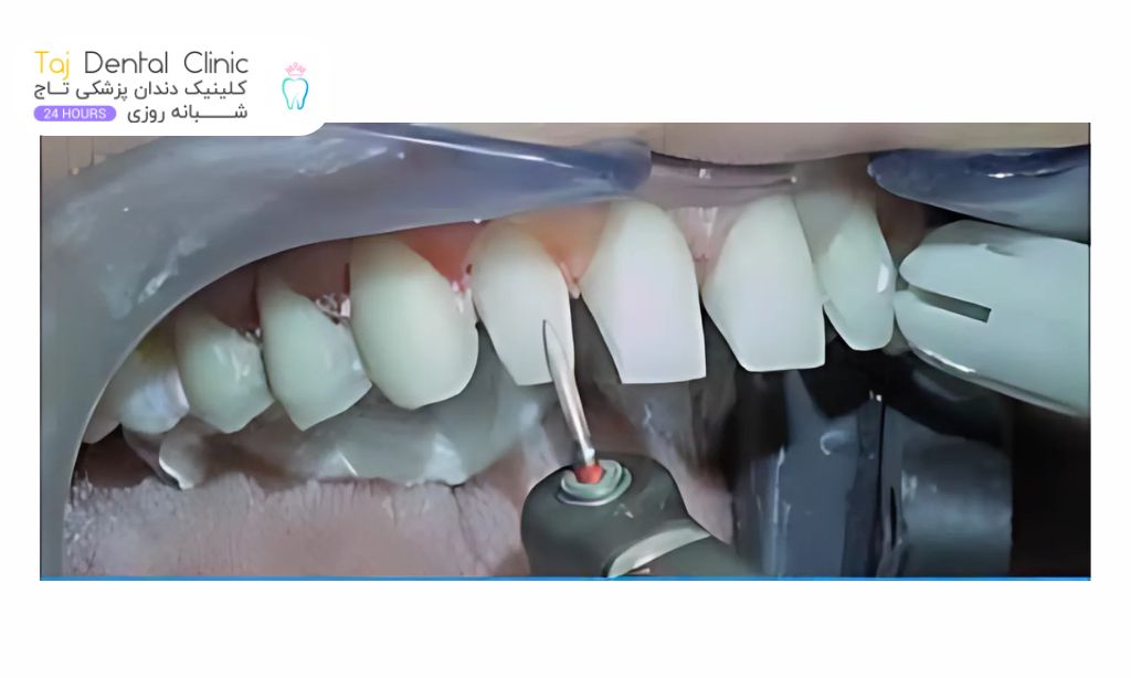 - رفع لکههای سرسخت: در برخی موارد، لکههایی روی سطح دندان وجود دارد که با روشهای معمولی مثل پولیش از بین نمیرود. تراشیدن این لکهها، سطحی تمیز برای نصب ونیر کامپوزیت فراهم میکند.