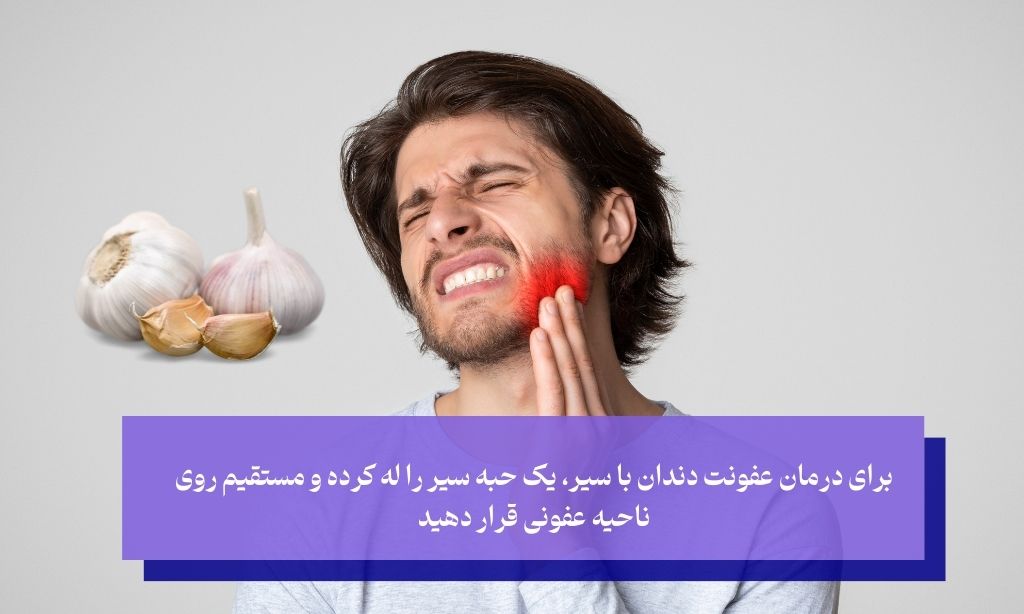 برای درمان عفونت دندان عقل یا سایر دندانها با سیر، یک حبه سیر را له کرده و مستقیم روی ناحیه عفونی قرار دهید. یا میتوانید از روغن سیر برای ماساژ لثههای ملتهب استفاده کنید.