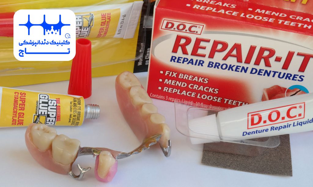 یکی از بیماران کلینیک تاج تعریف میکرد که در یک مهمانی شبانه، دندان مصنوعیاش شکست و با چسب قطرهای آن را به هم چسباند. در ابتدا نتیجه خوب بود، اما چند روز بعد، محل شکستگی دوباره باز شد و لثهاش دچار التهاب شدیدی شد.